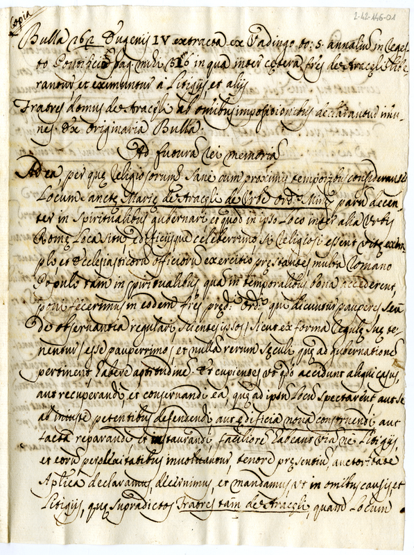 Copia della bolla di Eugenio IV numero 262 (1700-1721)