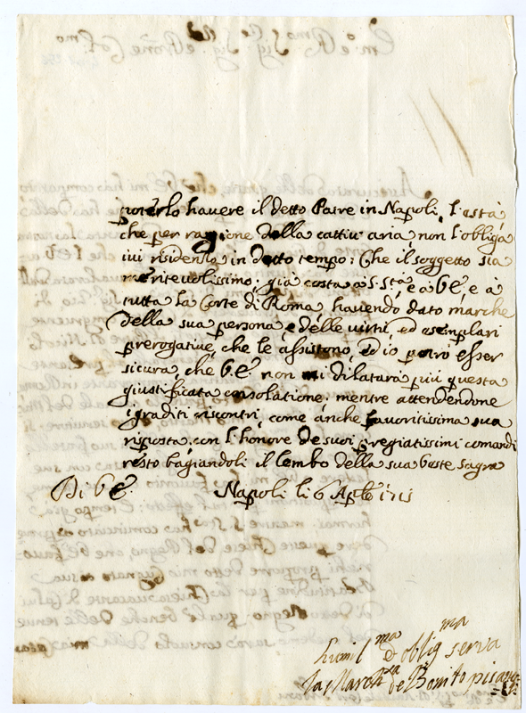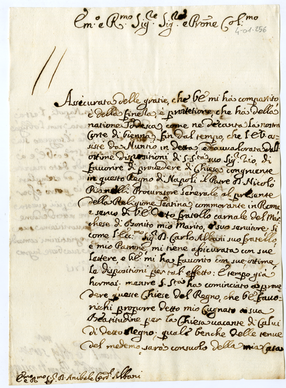 Lettera della Marchesa de Bonito Pisanelli al Cardinale Annibale Albani (1715 aprile 6)