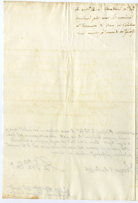 Chiede di essere nominato vescovo nella cattedrale di Traù, sede vacante per morte di Monsignor Farolfi
