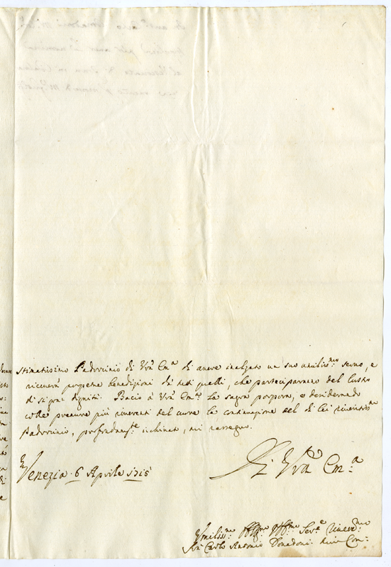 Lettera di Carlo Antonio Donadoni al Cardinale Annibale Albani (1715 aprile 6)