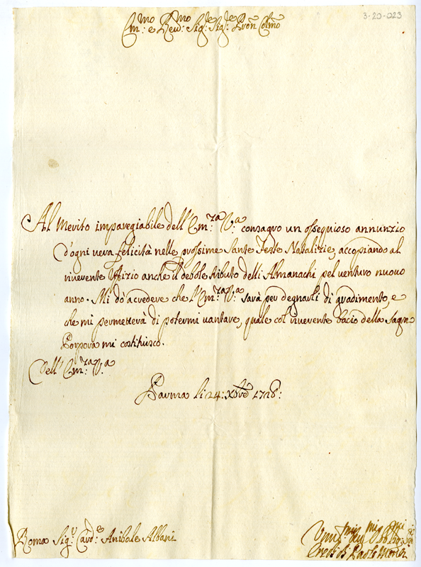 Lettera degli eredi di Paolo Monti al cardinale Annibale Albani (1728 dicembre 24)