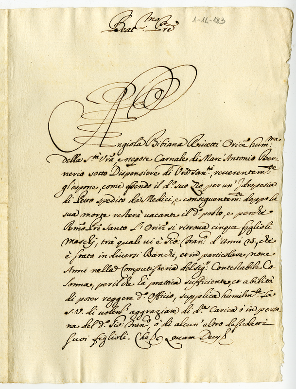 Supplica di Angela Bibiana Rivetti a Clemente XI