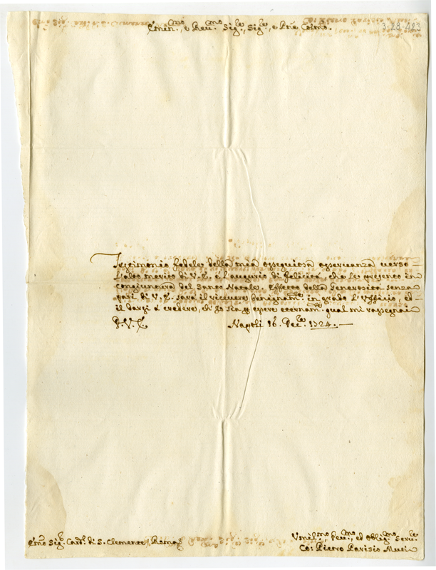 Lettera di Pietro Parisio Muti al cardinale Annibale Albani (1724 dicembre 18)