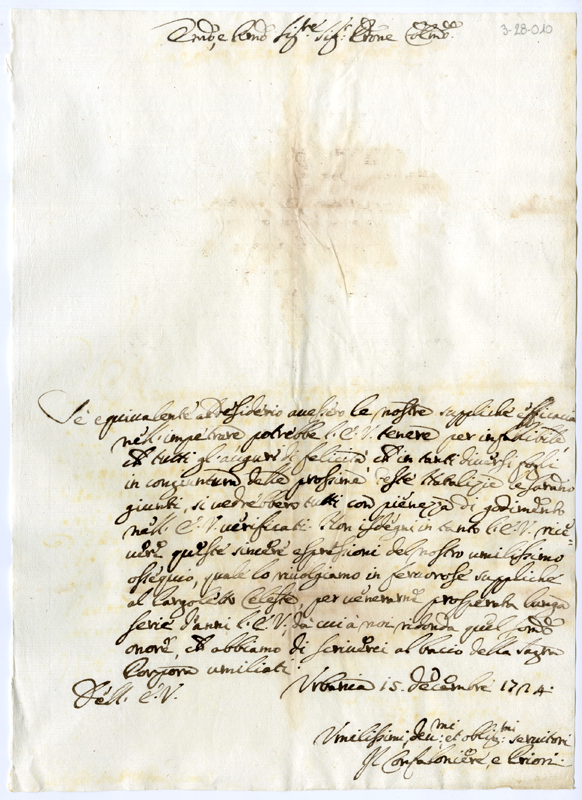 Lettera del confaloniere e priori della città di Urbania al cardinale Annibale Albani (1724 dicembre 15)