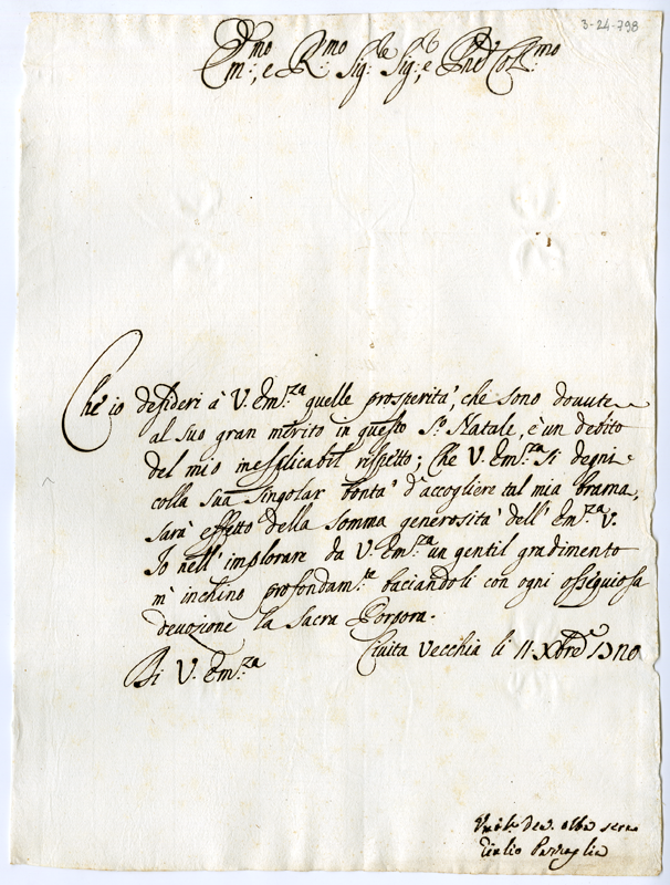 Lettera di Giulio Pazzaglia al cardinale Annibale Albani (1720 dicembre 11)