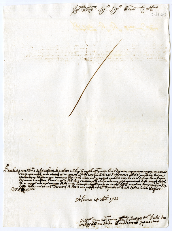 Lettera di fra Giuseppe Maria Fabri da Sant'Angelo in Vado al cardinale Annibale Albani (1723 dicembre 14)