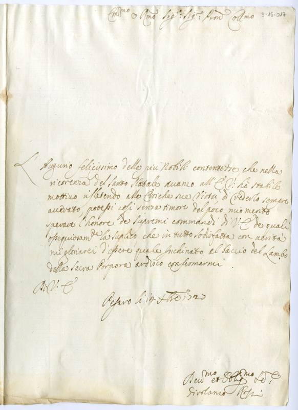 Lettera di Girolamo Rossi al cardinale Annibale Albani (1727 dicembre 14)