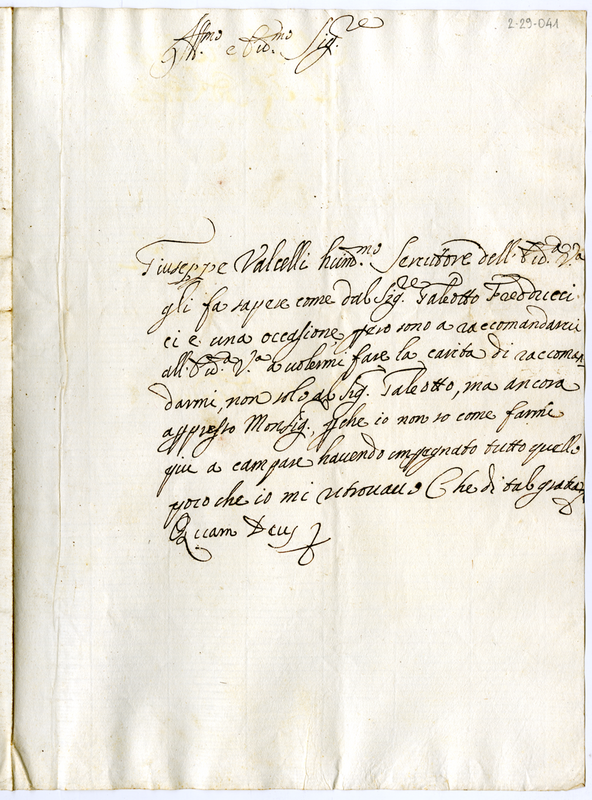 Lettera di Giuseppe Valcelli ad Annibale Albani (1700-1721)