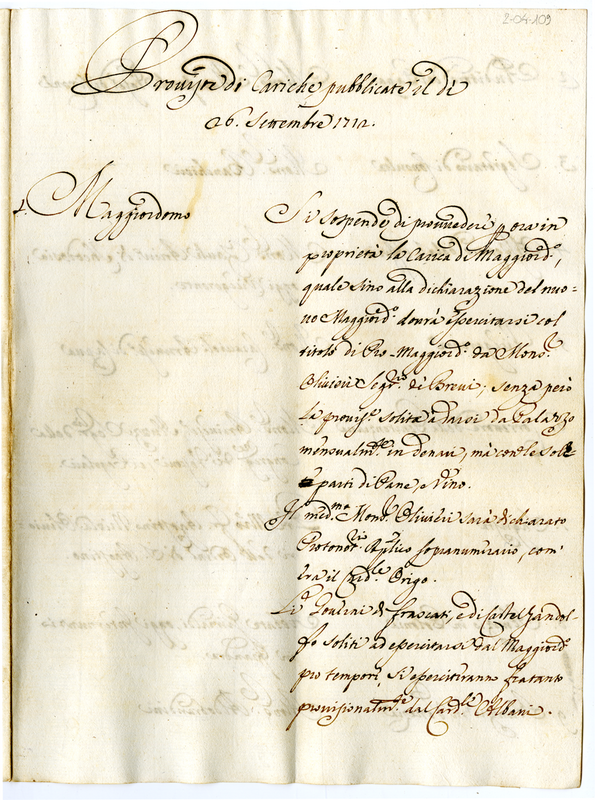Provviste di cariche pubblicate il dì 26 settembre 1712