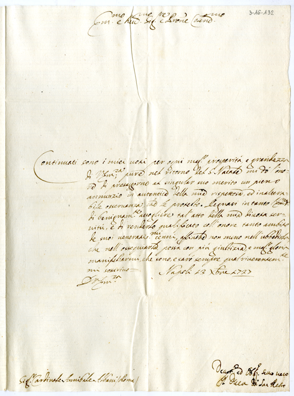 Lettera del duca di San Rebro al cardinale Annibale Albani (1727 dicembre 13)