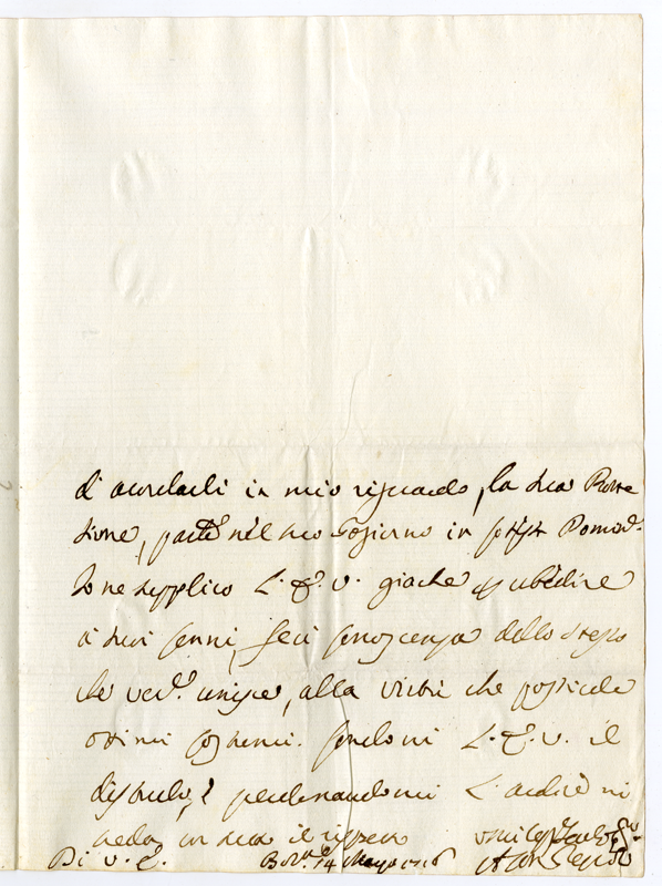 Lettera di Alessandro Pepoli al Cardinale Annibale Albani (1716 marzo 14)