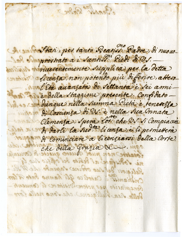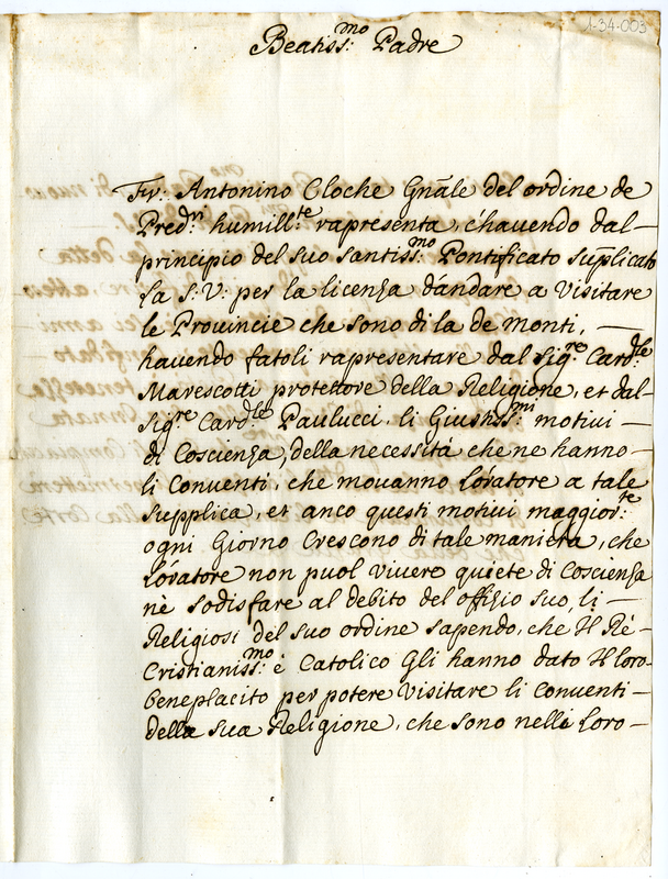 Il padre generale dell'ordine dei predicatori Antonino Cloche chiede al pontefice la licenza di visitare alcune chiese della provincia