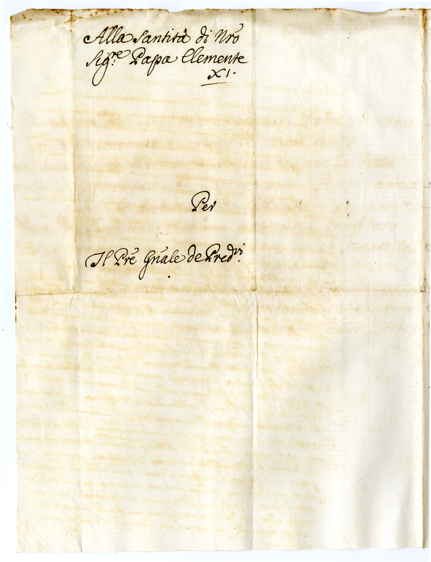 Lettera del padre generale dei predicatori a papa Clemente XI (1700-1721)