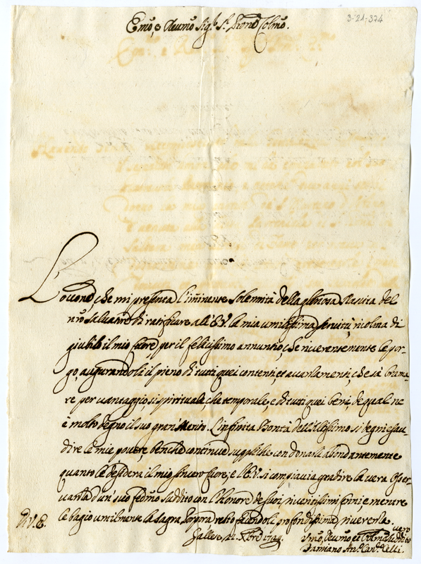 Lettera di Famiano Antonio Celli al cardinale Annibale Albani (1729 dicembre 21)