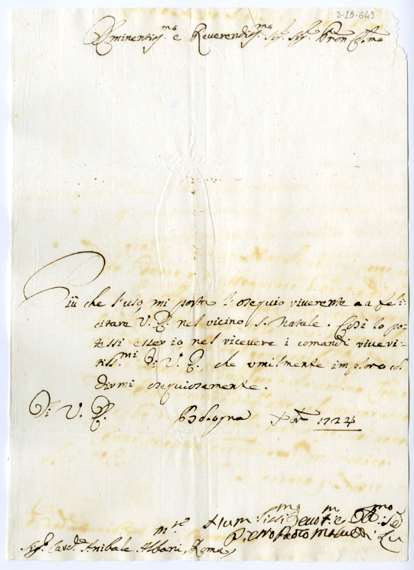 Lettera di Pietro Paolo Malvezzi al cardinale Annibale Albani (1724 dicembre)