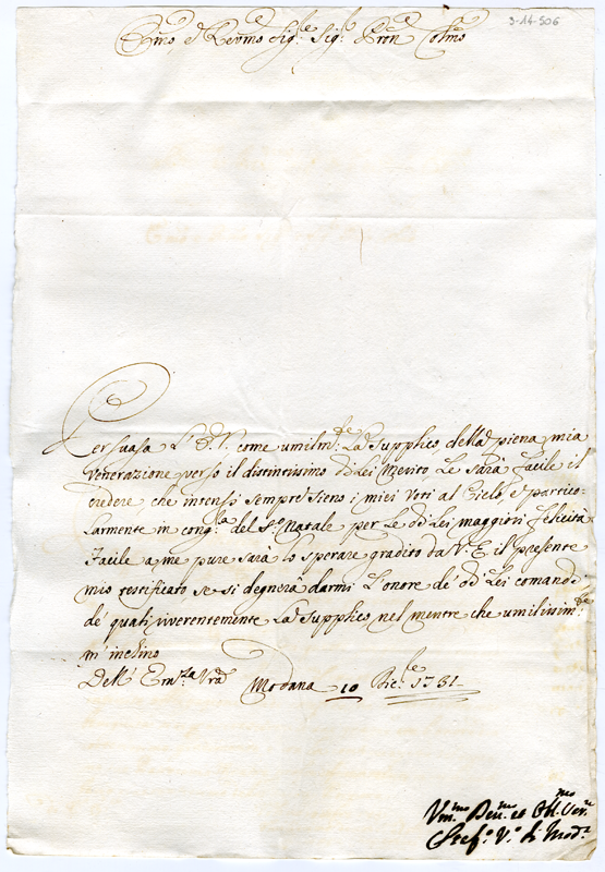 Lettera di Stefano vescovo di Modena al cardinale Annibale Albani (1731 dicembre 10)