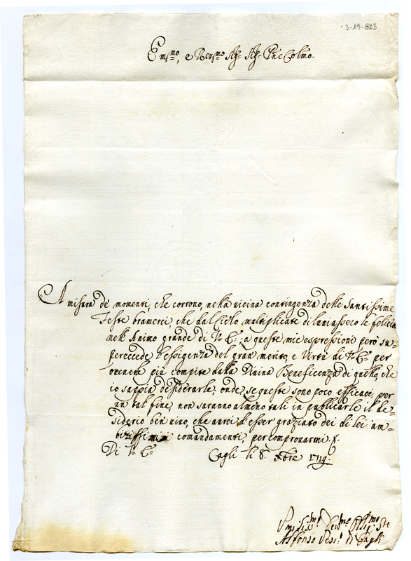 Lettera di Alfonso vescovo di Cagli ad Annibale Albani (1719 dicembre 8)
