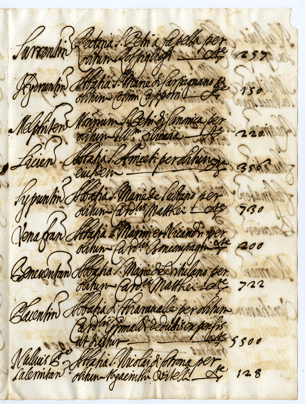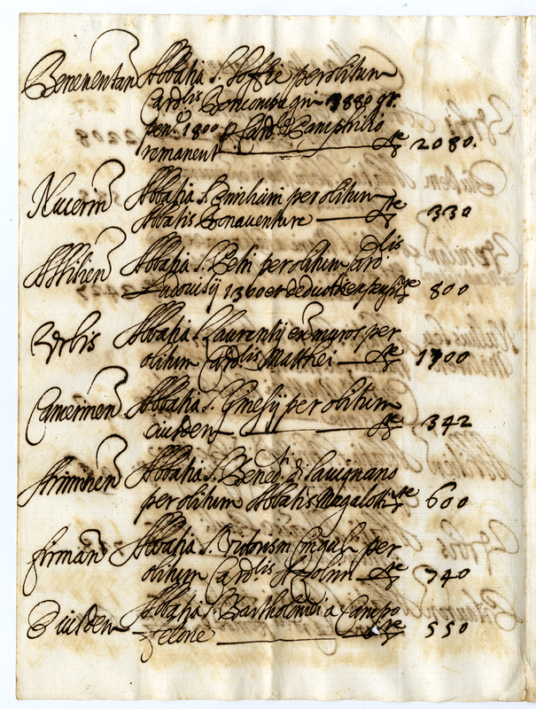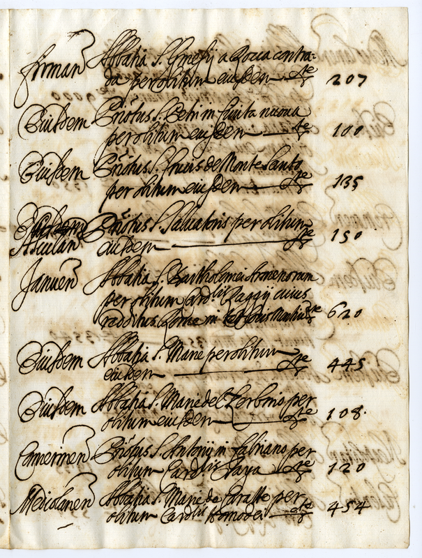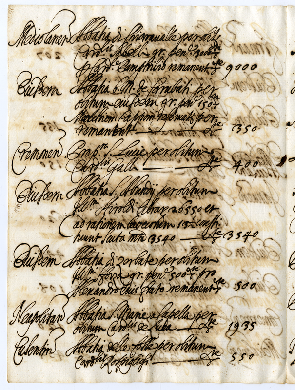 Elenco con relative rendite delle abbazie vacanti