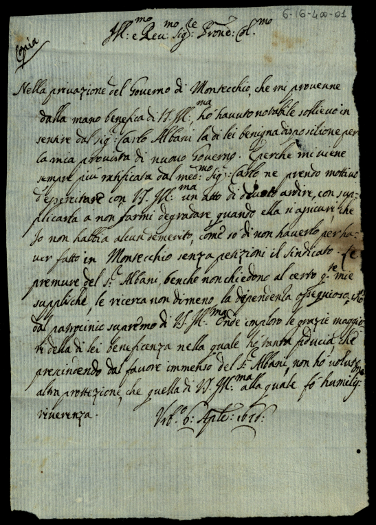 4. Lettere del signor Carlo Albani del 1678 e 1679 scritte a monsignor Albani suo figlio