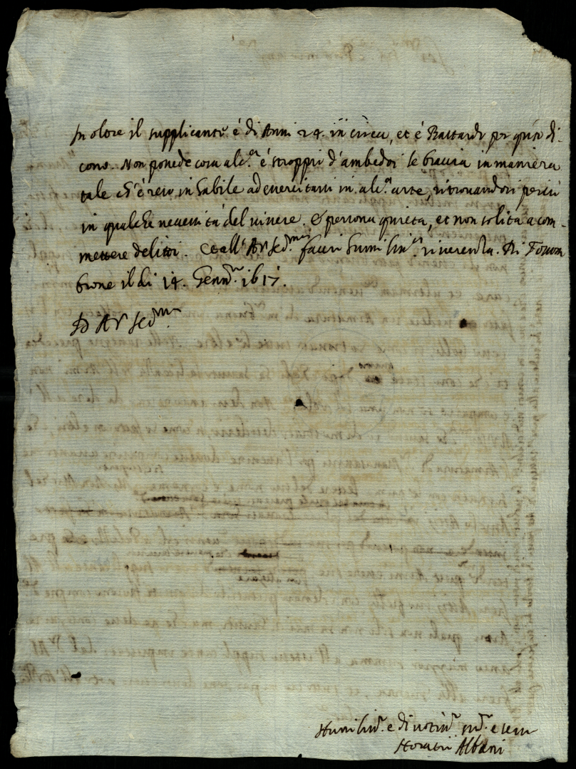 Minute di lettere scritte da Orazio Albani al serenissimo duca di Urbino appartenenti alla Podestaria di Fossombrone