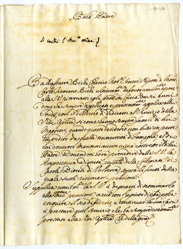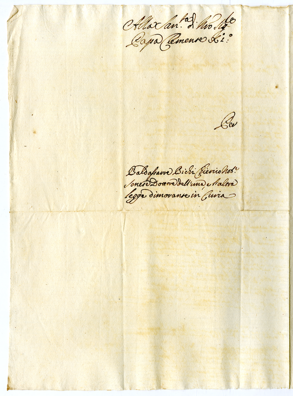 Lettera di Baldassarre Bichi a papa Clemente XI (1700-1721)