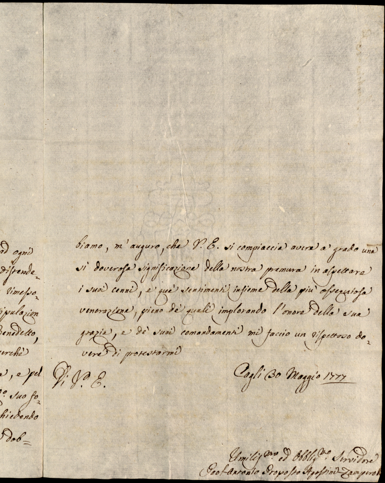 Lettere ricevute in Urbino nella permanenza in Urbino nei mesi di maggio, giugno e luglio 1777