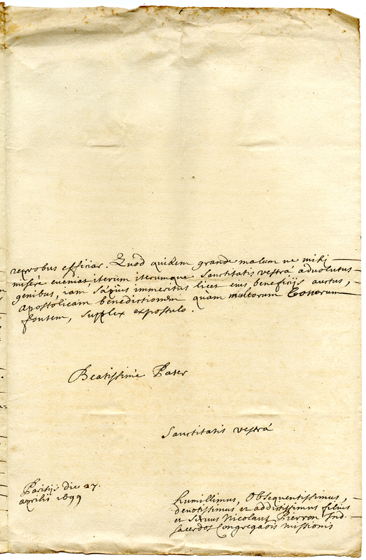 Lettera di Nicola Pierron a papa Innocenzo XII (1699 aprile 27)