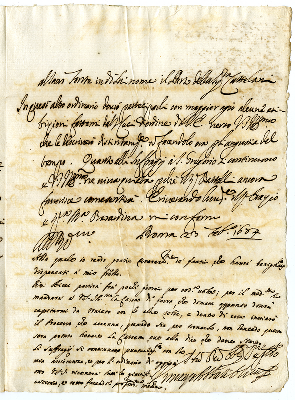 Lettera di Vincenzo Olivieri degli Abbati a Giovanni Francesco Albani (1684 febbraio 24)