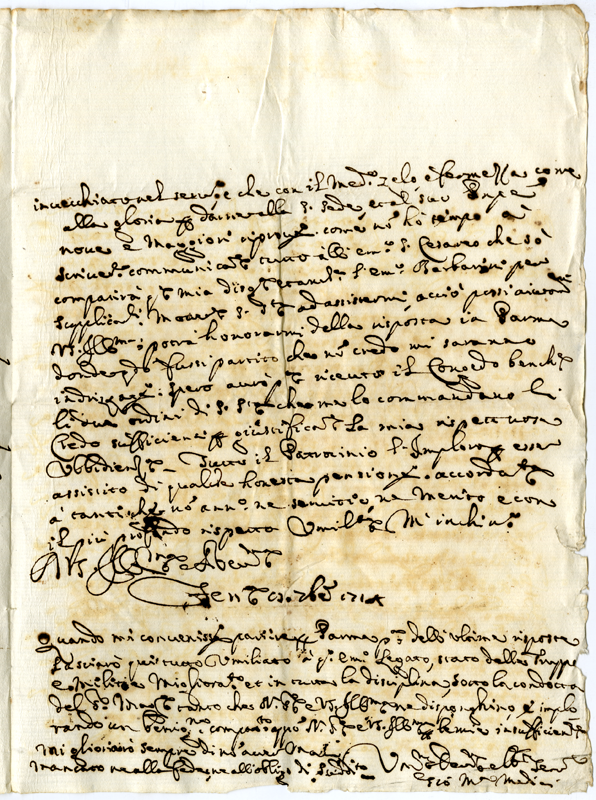 Lettera di Giovanni Maria Medici ad un prelato (1714 settembre 8)