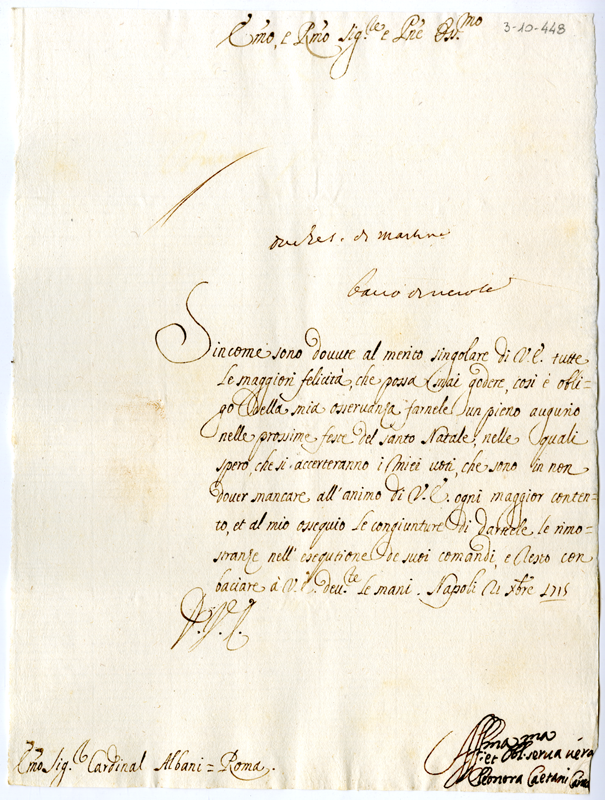 Lettera di Eleonora Caetani al cardinale Annibale Albani (1715 dicembre 21)