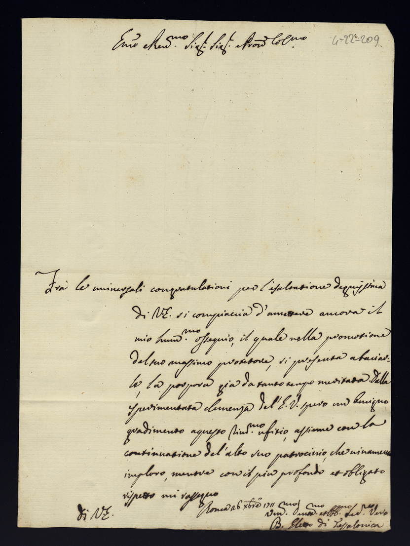 Lettere di congratulazioni per la promozione di Sua Eccellenza al Cardinalato