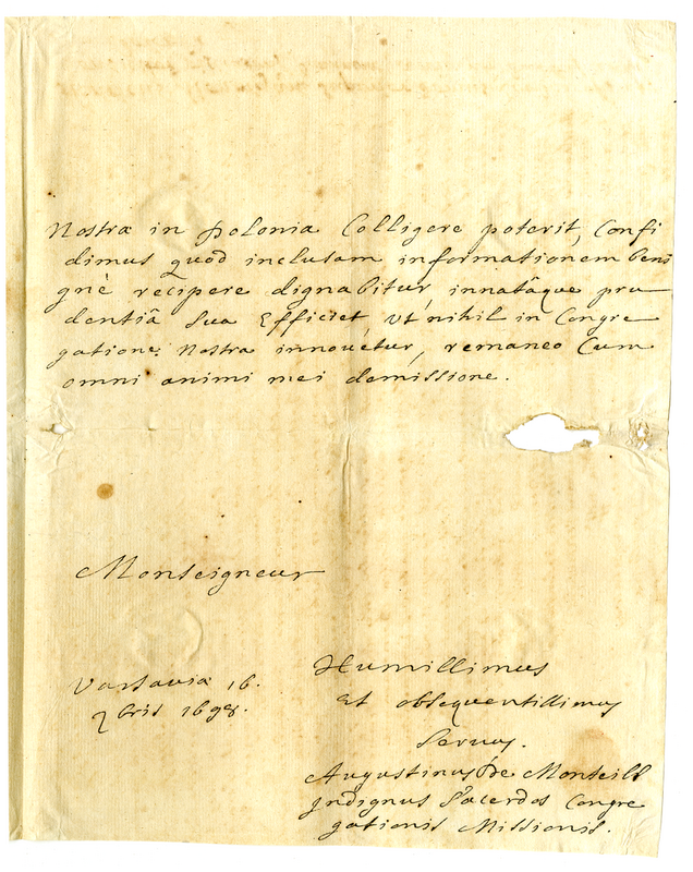 Lettera di padre Agostino al Cardinale Albani (1698 aprile 16)