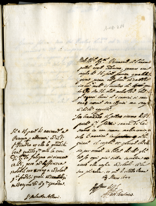 Lettera del cardinale Barberini Francesco senior a Malatesta Albani (1644 marzo 23)