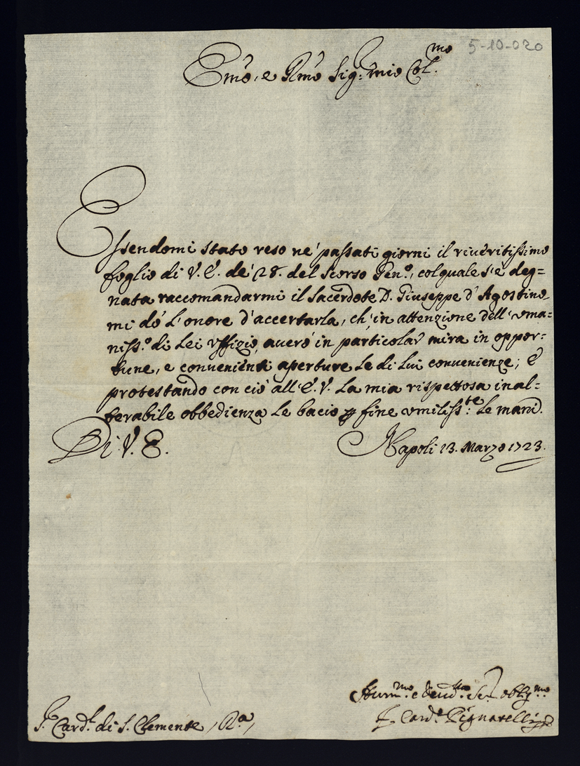Lettere di raccomandazione. 1710 - 1723
