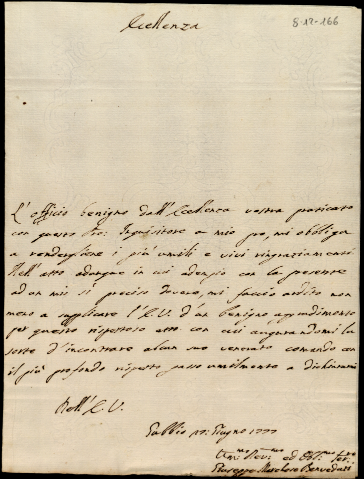 Lettere ricevute in Urbino nella permanenza in Urbino nei mesi di maggio, giugno e luglio 1777