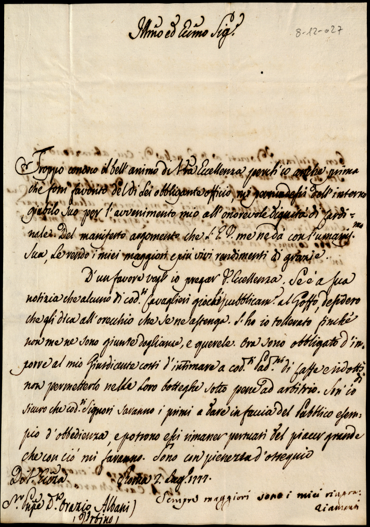 Lettere ricevute in Urbino nella permanenza in Urbino nei mesi di maggio, giugno e luglio 1777