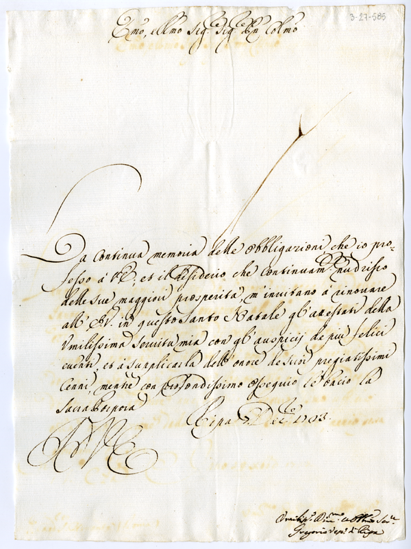 Lettera di Gregorio vescovo di Ripa al cardinale Annibale Albani (1723 dicembre 7)