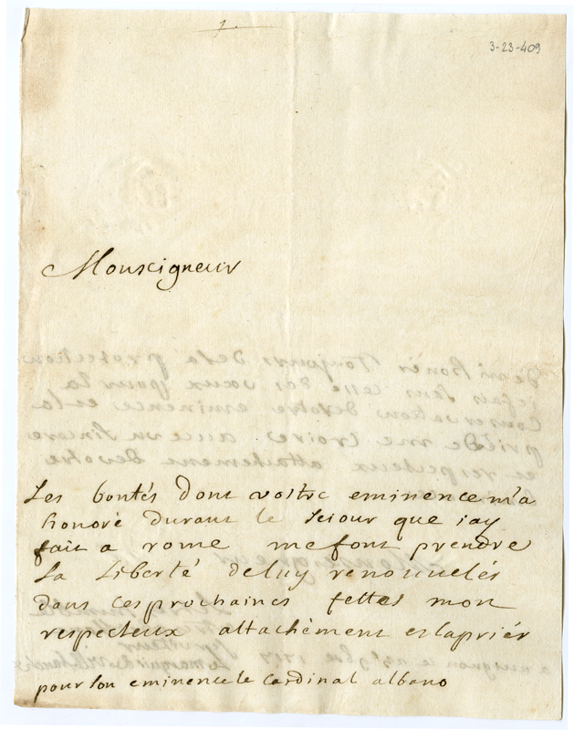 Lettera del marchese di Villefranche al cardinale Annibale Albani (1717 novembre 23)