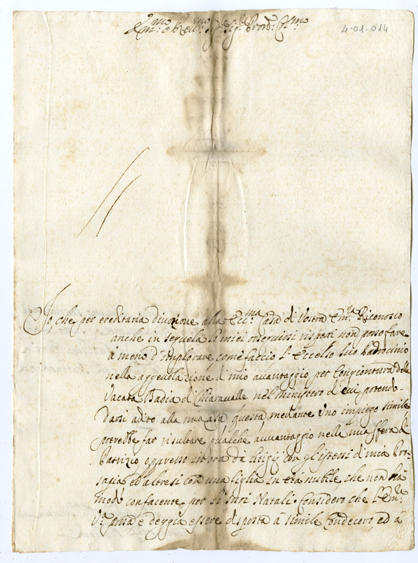 | dc.description | Chiede la protezione del Cardinale per la nomina all'abbazia di Chiaravalle | |