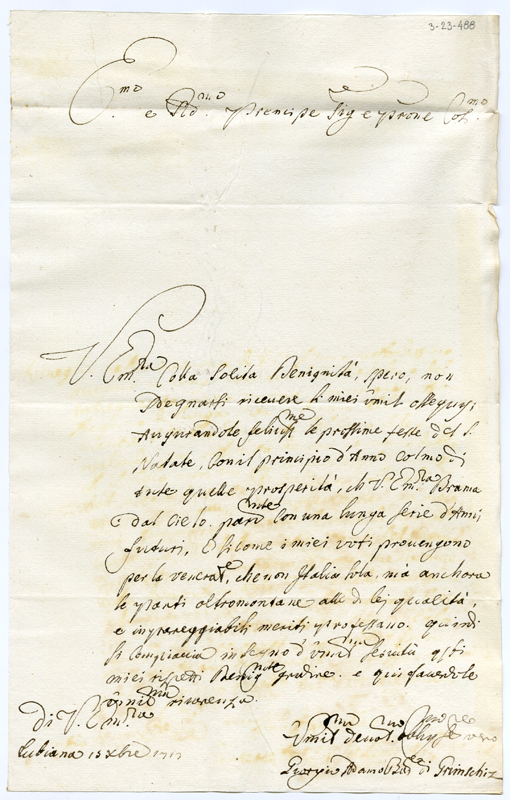Lettera di Giorgio Adamo barone di Grimschirz al cardinale Annibale Albani (1717 dicembre 15)
