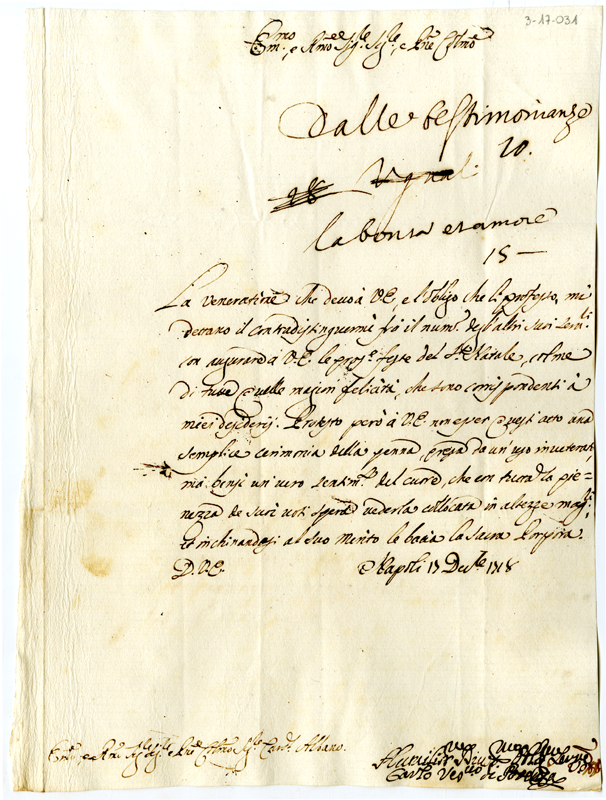 Lettera di Carlo vescovo di Potenza al cardinale Annibale Albani (1718 dicembre 17)
