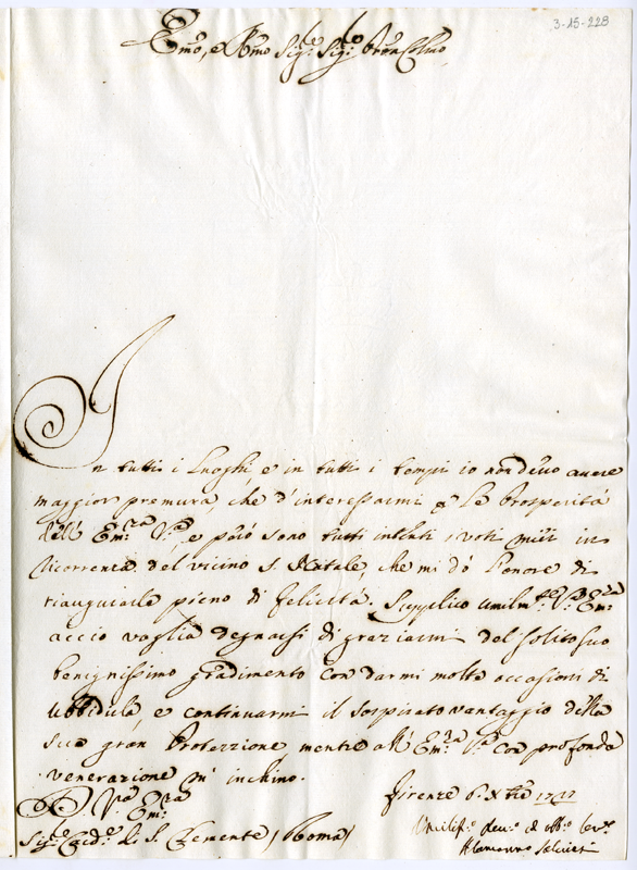 Lettera di Alamanno Salviati al cardinale Annibale Albani (1727 dicembre 6)
