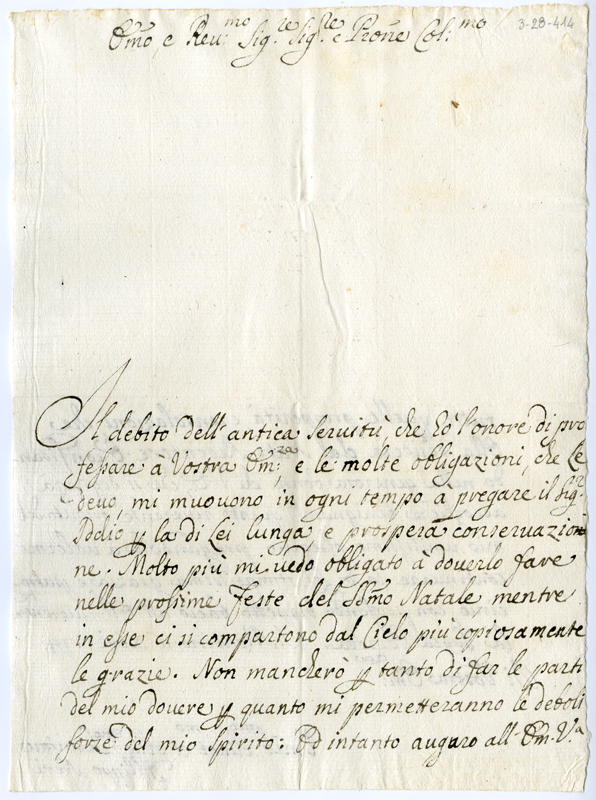Lettera di Filippo Neri al cardinale Annibale Albani (1724 dicembre 16)
