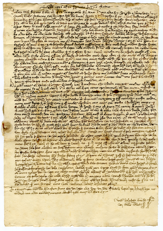 Lettera di Antonio della Gatta a Filippo Albanese (1506 gennaio 20)