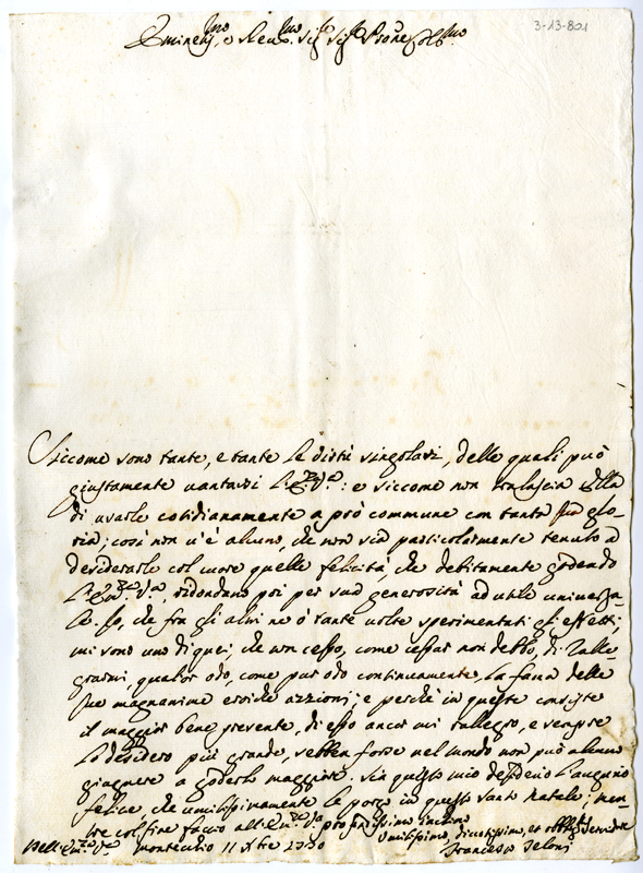 Lettera di Francesco Teloni al cardinale Annibale Albani (1730 dicembre 11)