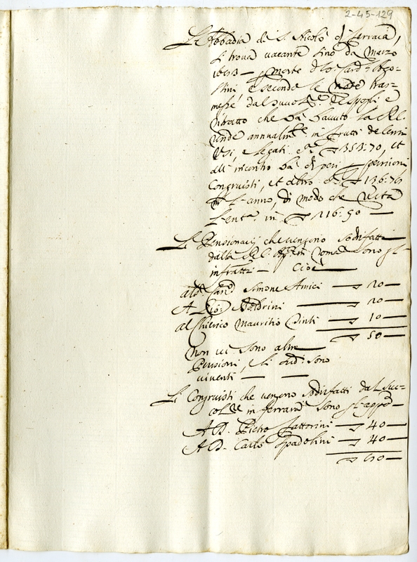 Rendite e pensioni dell'abbazia di San Nicolò di Ferrara (1698)