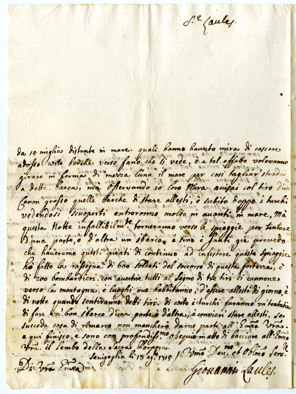 Lettera di Giovanni Laules ad un cardinale (1715 agosto 18)