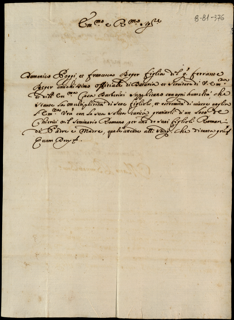 Memoriali diversi diretti al signor cardinale S. Onofrio