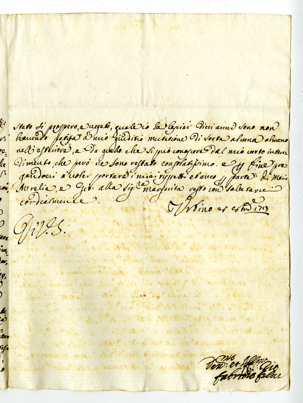 Lettera di Fabrizio Felici a suo nipote (1717 ottobre 8)