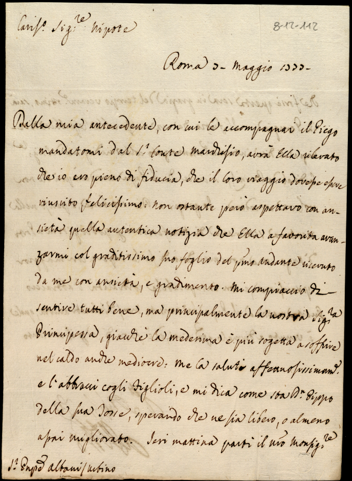 Lettere ricevute in Urbino nella permanenza in Urbino nei mesi di maggio, giugno e luglio 1777